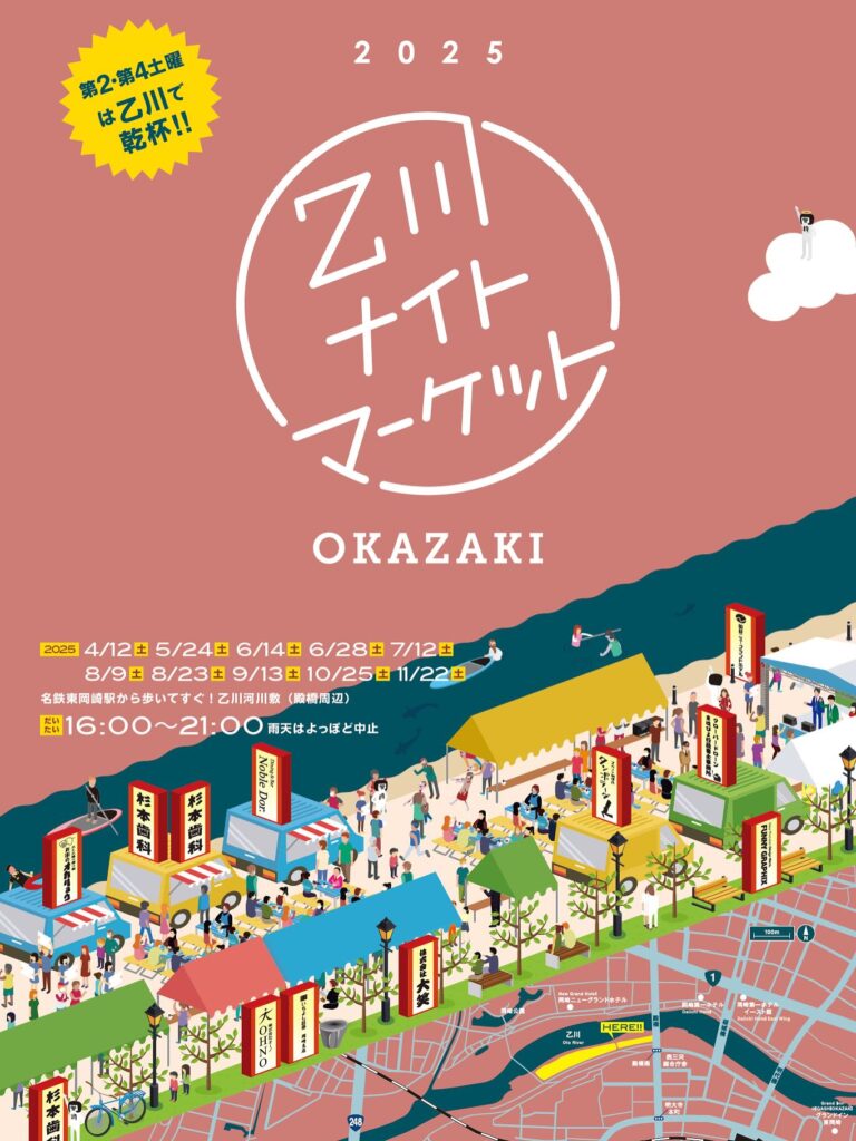 前回開催予定日はまさかの乙川の増水により中止となりました「乙川ナイトマーケット」