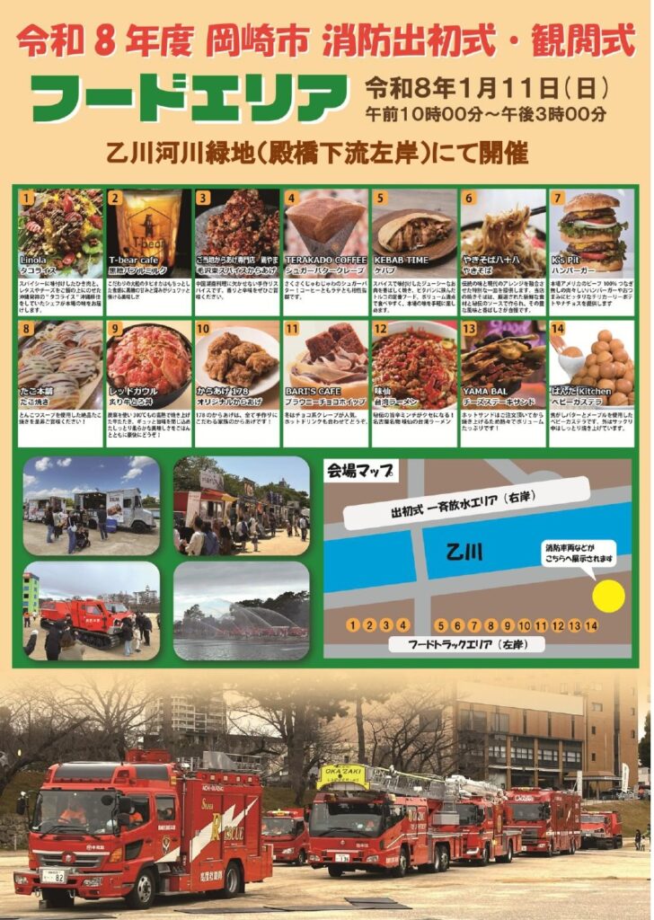 岡崎市消防本部による出初式に今年もフードエリアの設置が決定致しました!