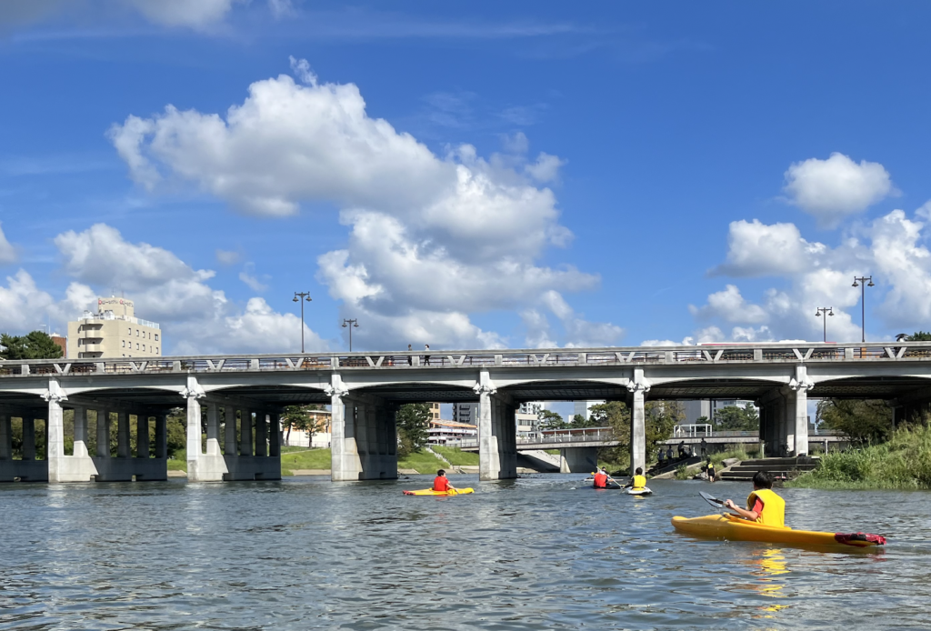 まちなかリバーSUPでは、ボードの上に座り自分と向き合い、水上で風を感じながら、五感を研ぎ澄まし日常の疲れがスーっと消えていく。そんな特別な時間を体験することができます。また、SUPを漕ぎながら街のシンボルである岡崎城を眺めたり、橋の下をくぐったりするなど、まるで探検をしているようなワクワク感を味わっていただくことができます。