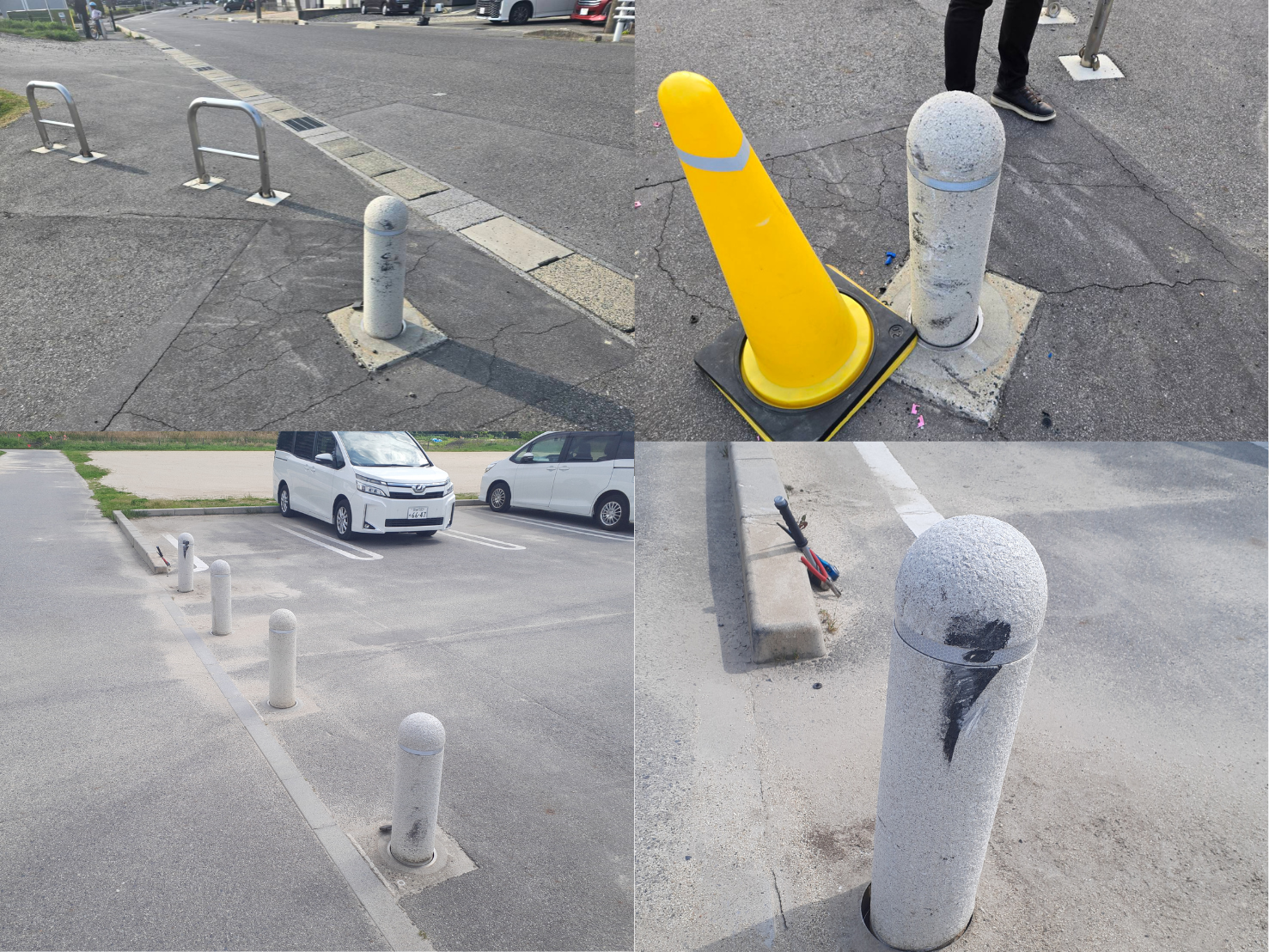 乙川河川緑地内に設置している車止め(バリカー・ボラード)への車両接触による破損が、最近増加しております。